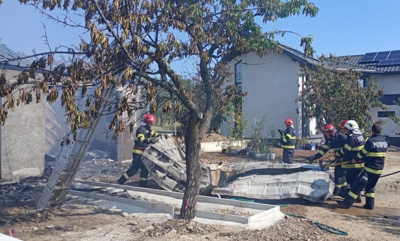 Garaj mistuit de flăcări în Păulești!Panourile fotovoltaice, cauza probabilă a incendiului