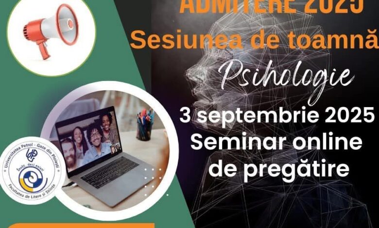 Universitatea Petrol-Gaze din Ploiești anunță deschiderea înscrierilor pentru programul de licență în Psihologie, o oportunitate excelentă pentru cei interesați să exploreze fascinantul domeniu al comportamentului uman și al proceselor mentale. Înscrierile pentru acest program se vor desfășura exclusiv fizic, la sediul universității, în perioada 1-4 septembrie 2025, în intervalul orar 09:00-13:00.