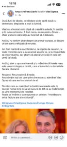 Anca David, sora lui Vlad Oprea, cunoscută pentru un incident în care a agresat un jandarm în timpul perchezițiilor din ianuarie; „Orice factura vine cu chitanta” a declarat aceasta pe pagina sa de facebook.