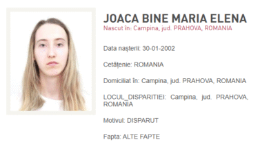 Poliția Municipiului Câmpina desfășoară căutări ample pentru găsirea unei tinere în vârstă de 23 de ani, Maria Elena Joacă-Bine, care…